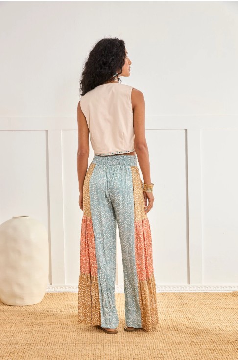 Printed Trousers With Mixed Colours And Embroidered Waistband