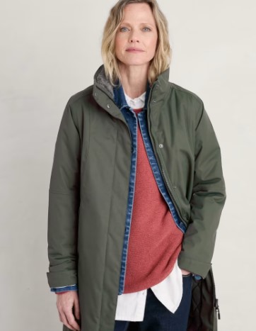 anelle Coat Regular Woodland. Onze geliefde Janelle regenjas is gemaakt om jarenlang mee te gaan en heeft een Tide CycleÁ® buitenkant van gerecycled nylon. De relaxte vorm biedt voldoende comfortabele lagen eronder en hij valt tot op de knie voor extra bedekking. De bovenste helft is gevoerd met zacht gerecycled fleece, terwijl de gewatteerde voering aan de onderkant je bewegingsvrijheid en warmte geeft. De afneembare capuchon is ontworpen voor de Cornish-elementen en heeft een klep om je gezicht te beschermen. Er zijn reflecterende stroken voor bewolkte dagen en nachtelijke wandelingen.Hoofdkleding: gerecycled nylon. Voering bovenlichaam en capuchon: gerecycled polyester. Voering onderlichaam en mouwen: gerecycled polyester. Voering onderlichaam en mouwen: gerecycled polyester. Voering zakken: gerecycled polyester. Wattering: gerecycled polyester. Ontspannen pasvorm. Verstelbare en afneembare capuchon. Verstelbare manchetten. Rits- en drukknoopsluiting. Binnenzak. Zakken met rits. Reflecterende strips. Achterkant zoom gedipt. Machinewas 30C.