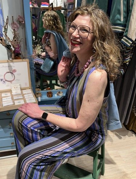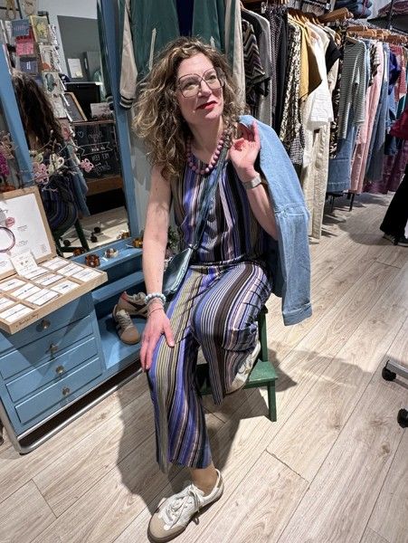 Wempino Jumpsuit Chains. Comfortabele ruimvallende jumpsuit in mooie print. Mouwloos, plooitje vanuit de hals, keyhole sluiting achter, aangerimpeld in de taille. Deze jumpsuit valt blousend, heeft een wijde rechte broekspijp, voorzien van steekzakken. Gemaakt van fijne stretch Viscose/ Elastan Tip: Wij adviseren een maatje kleiner te kiezen.