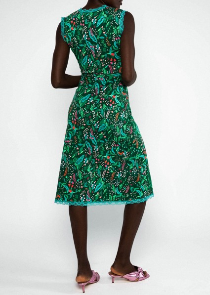 Zomerse midi wikkeljurk in pastel geel nuances. Deze jurk heeft een aangesloten boven lijfje, V hals met kraag, steekzaken en linten om de jurk van binnen uit en aan de buitenzijde te strikken. Aangerimpeld onder de borst. gemaakt van luchtige non stretch viscose / Katoen. Tip: Wij adviseren 1 maat kleiner te kiezen.