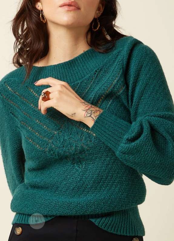 De Erin Top Farfalle heeft een flatterende boothals en lange mouwen met elegante manchetten voor een verzorgde look. Het open breiwerk op het schouderstuk voegt een delicaat, ademend detail toe, terwijl het gebreide stof de hele dag voor comfort zorgt. Perfect om te layeren of solo te dragen, deze top combineert stijl en gemak moeiteloos. Boatneck. Lange mouwen met boorden. Open knitwork at the yoke. Stretch. Ons model is 1,65 m en draagt maat: S. Stofsamenstelling: 55% acrylic, 30% nylon, 10% wool, 5% mohair. Tip: Deze trui valt ruim. Wij adviseren een maatje kleiner te kiezen.